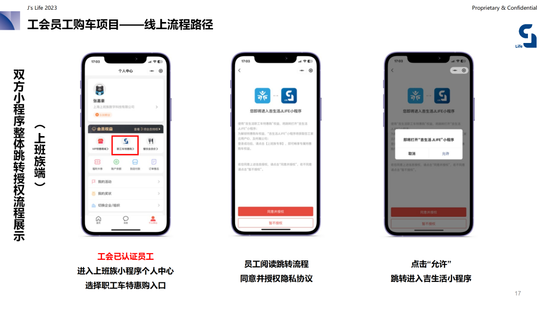 【工家云平台】结合【上汽·吉生活】展开线上线下联动合作,以工会会员购车服务作为出发点,将双方线上小程序实现相互打通,为工会会员提供更好的优质汽车服务。