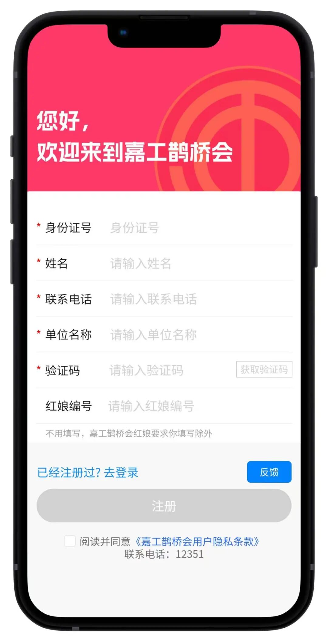 进入“嘉工鹊桥会”。注册流程如下: