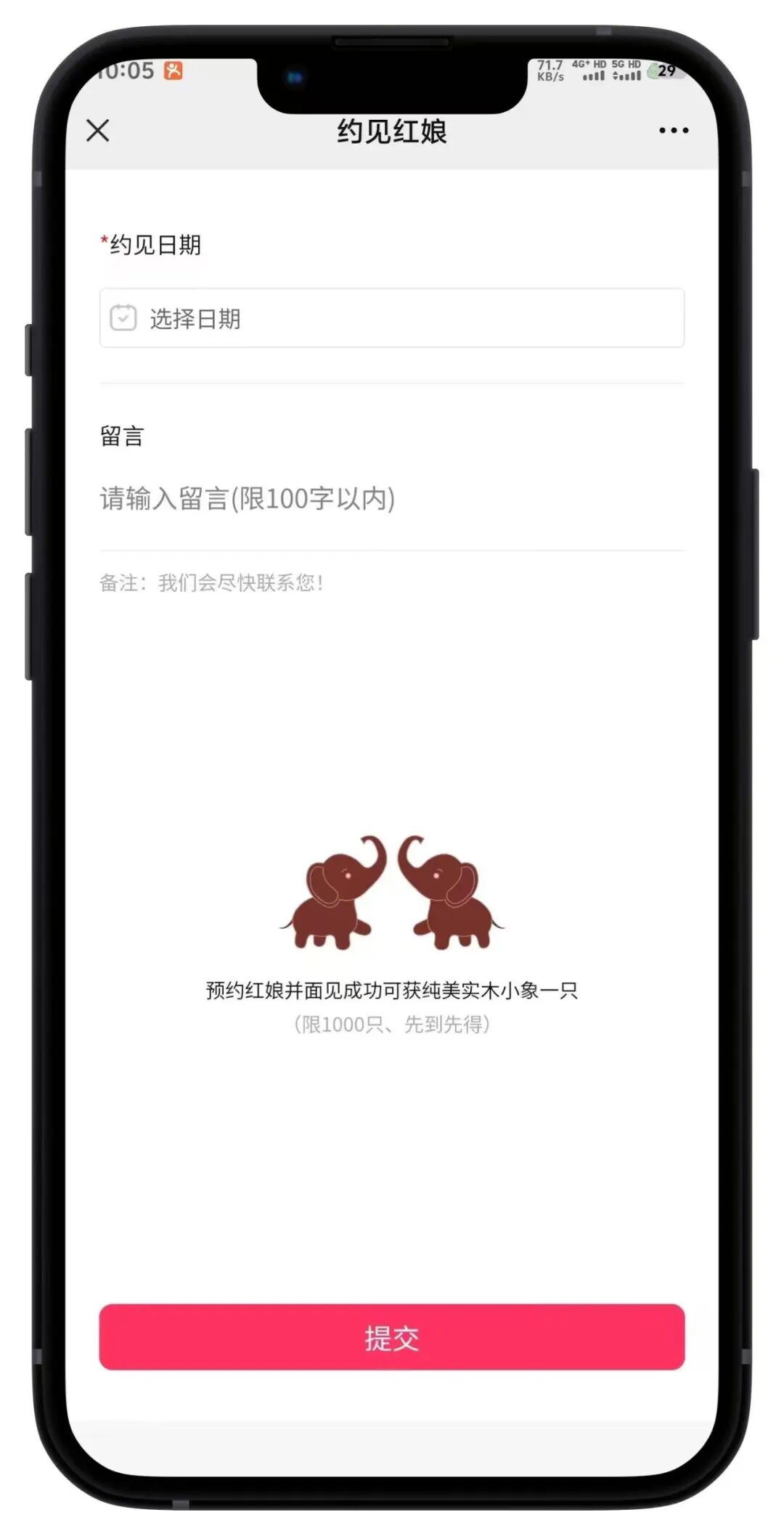点击约见红娘跳转至约见红娘页面,可选择约见日期、输入留言来提交约见信息。提交完成后,工会管理员在后台审批是否审核通过,审核通过/拒绝用户都会收到短信消息。